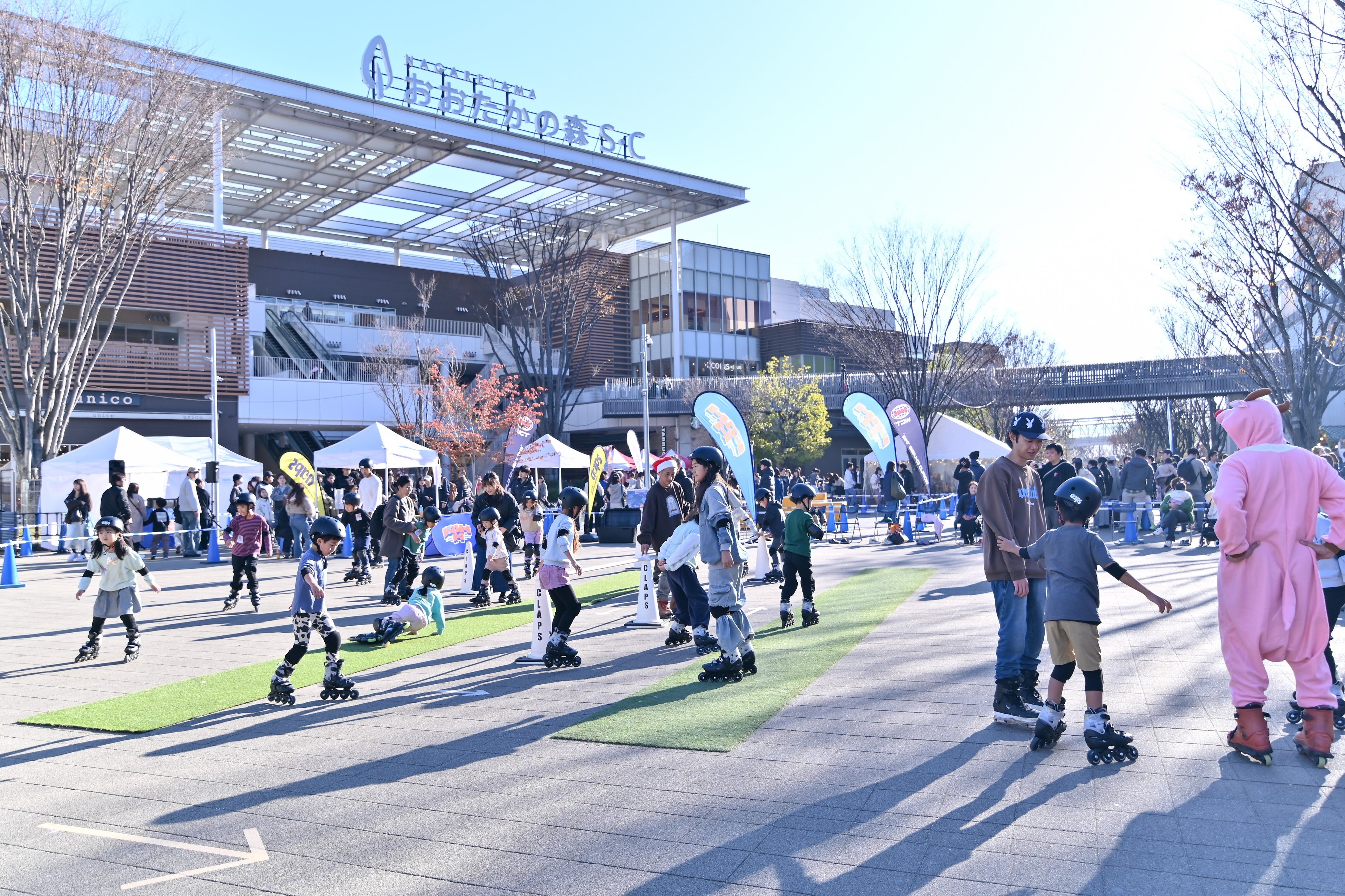 昨年12月の大盛況を受け、流山おおたかの森S.C.に『クロススポーツパーク』が帰ってきました。今回は前回よりもインラインスケートの体験エリアを拡張し、より多くの方に広々としたスペースで滑る楽しさを味わっていただけます。また、開催時間を前回より1時間延長し、体験コンテンツをさらに充実させました。