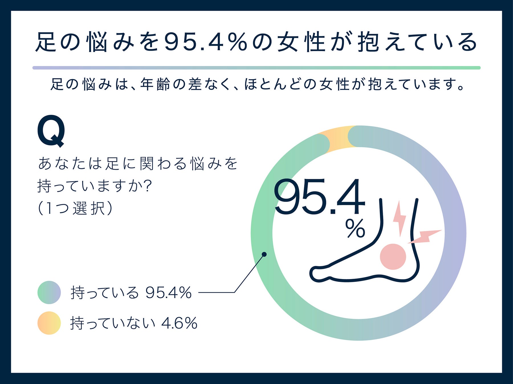 〇95.4%の人が足に悩みを抱えており、世代を問わず多くの人が「自分の足に合うシューズ」に