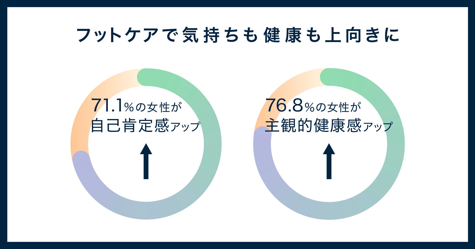 また、フットケアを行うことで自己肯定感にプラスの影響があったと回答した人は計71.1%で、健康的だと感じる人は計76.8%でした。