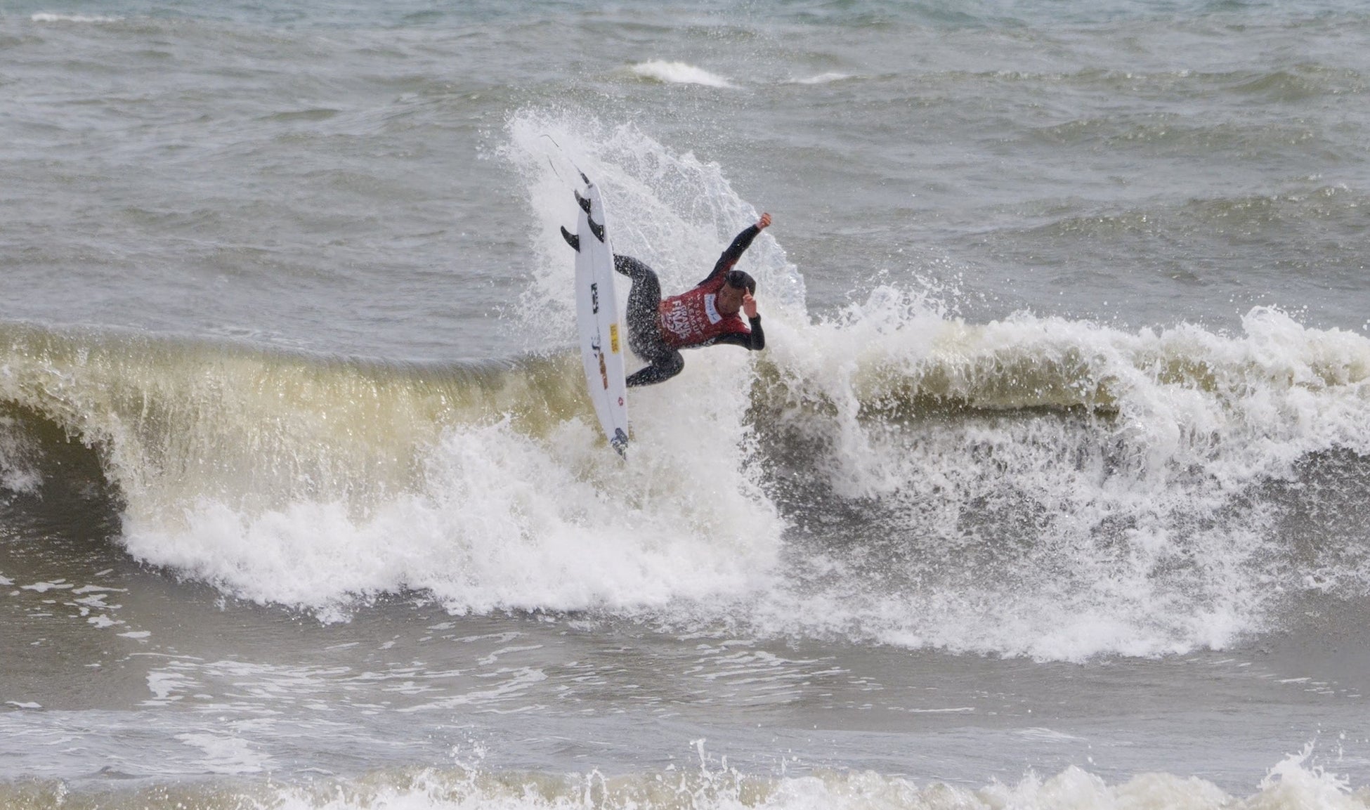 難しいコンディションの中、前半は安室が主導権を握る展開となるも、後半に大原が本来のリズムを取り戻し、ライト、レフトへと的確に乗り継ぎながら技数を重ねて逆転。リードを守り切り、地元・一宮での優勝を決めました。