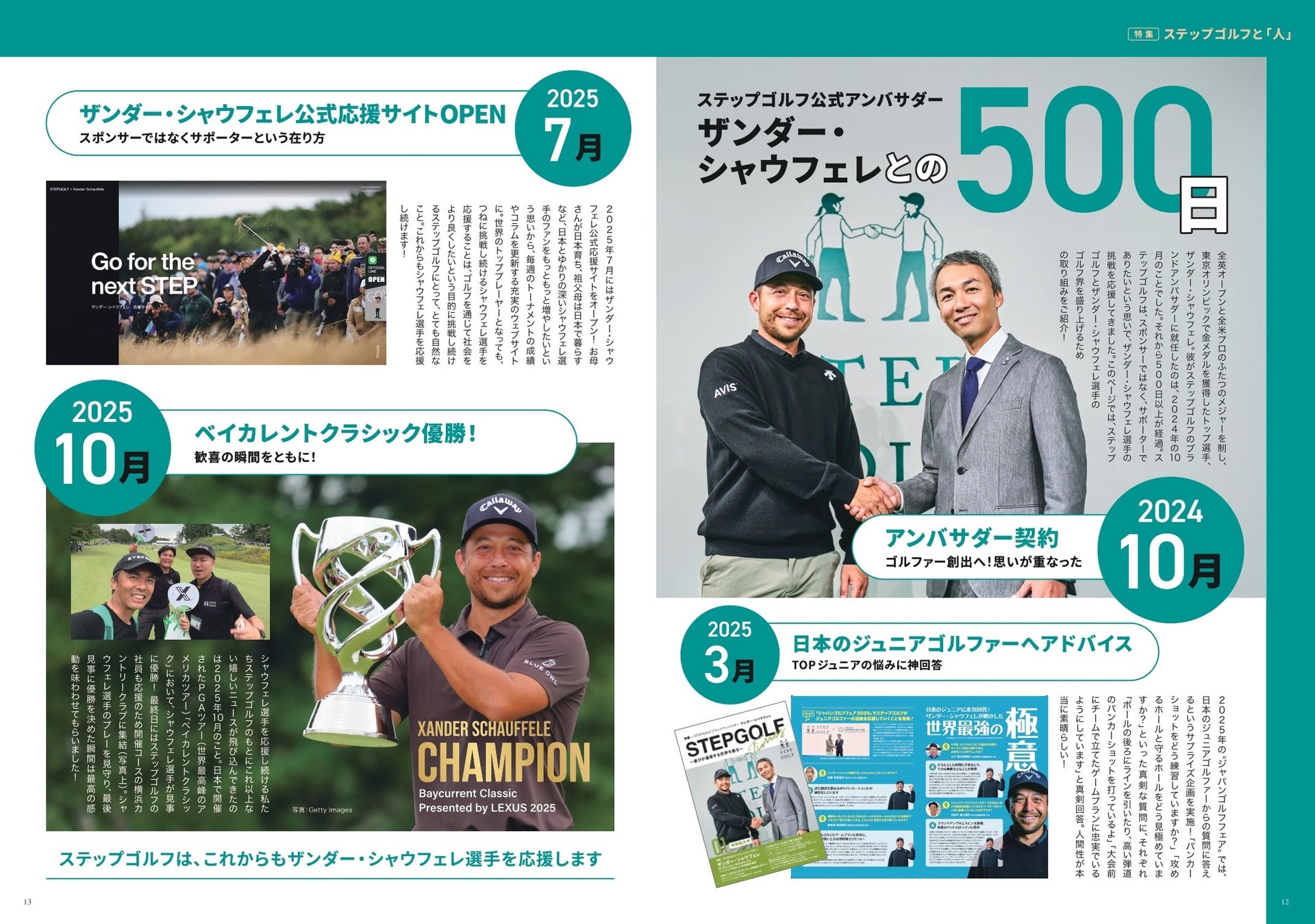 この500日超の取り組みは、私たちステップゴルフにとって何物にも代え難い貴重な財産であり、同時に、日本ゴルフにとっても極めてポジティブな影響を与えるものになりました。ステップゴルフは、「Go for the next STEP」というスローガンとともに、これからもザンダー・シャウフェレ選手を応援し続けます。