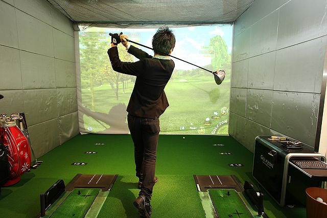 最新ゴルフシュミレーター「GOLFZON」設置3Dのリアルなコースが映し出されたスクリーンに向かって、ボールを打つことにより、インドアにいながら実際にラウンドしている感覚でゴルフを楽しむ事ができるのがGOLFZONです。