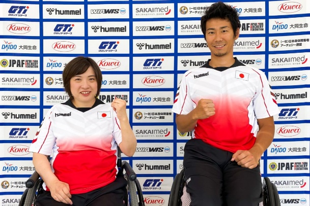 岡崎愛子(左) 上山友裕(右) ©日本身体障害者アーチェリー連盟