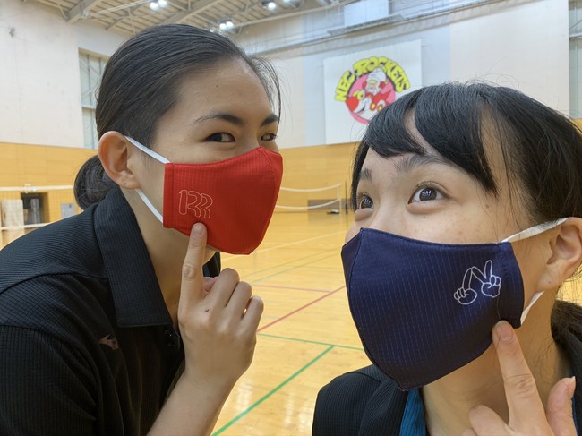 オンラインで先行発売となった『さる(古賀)×宇宙人(廣瀬)のデザインロゴマスク』と、赤のRedrocketsのRRデザイン、紺のNECのNデザインは島村春世選手と小島満菜美選手がデザインしたマスクで、会場でも販売いたします。