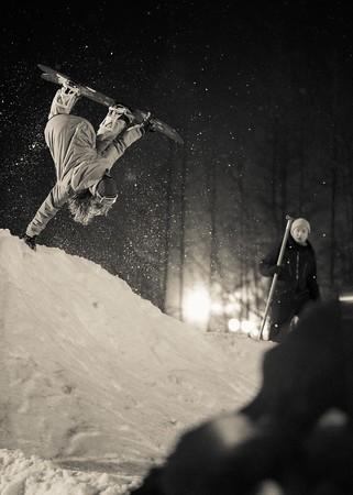街に積もった雪を利用して、階段の手すりなどを使い、スタイルを出す。