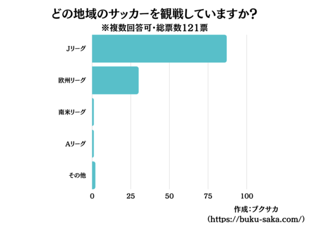 ・観戦が多いリーグは『1位:Jリーグ』『2位:欧州リーグ』『3位:南米リーグ・Aリーグ』でした。